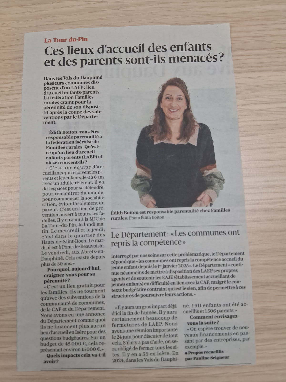 Cette année, le département de l’Isère a informé tous les LAEP de l’Isère de la cessation de leur aide financière, ce qui constitue pour nous un quart de notre budget. À la suite de notre comité de pilotage, le conseil d’administration, réuni le 3 juillet 2025, a dû décider la clôture du service LAEP GRAIN D’AILE, structurellement déficitaire depuis le 30 septembre 2025.