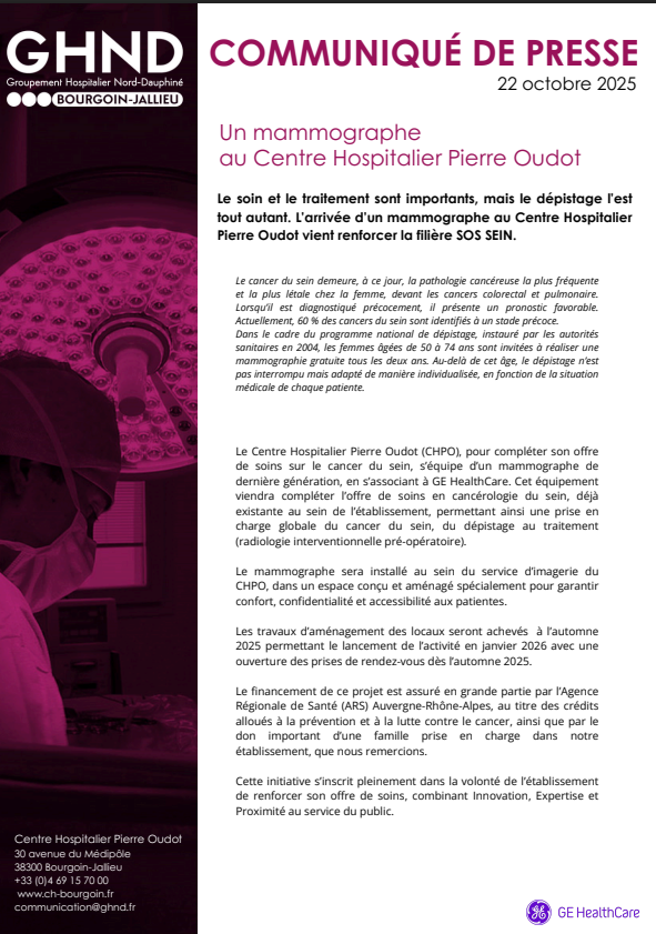 UN MAMMOGRAPHE INSTALLÉ AU CENTRE HOSPITALIER DE BOURGOIN